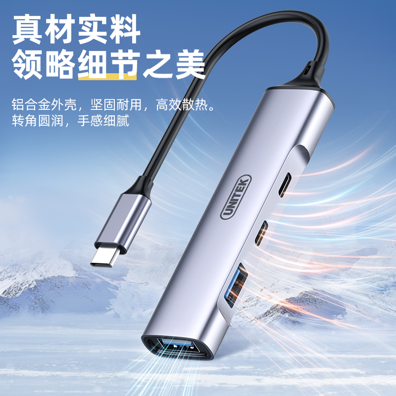 Bộ chuyển đổi 4 cổng Type-C ->USB + Type-C + PD100W UNITEK H311C