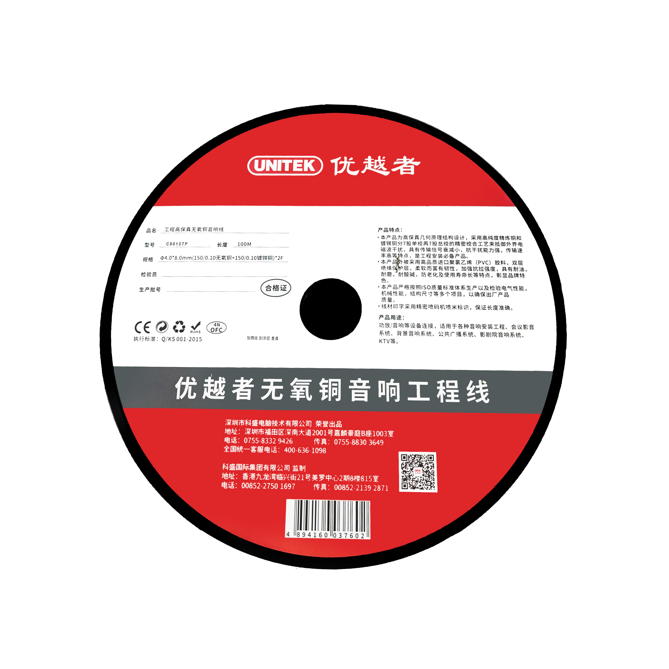 Cáp Loa Hi-Fi 150 Tim OD 4.0x8.0mm 100m UNITEK C9013TP