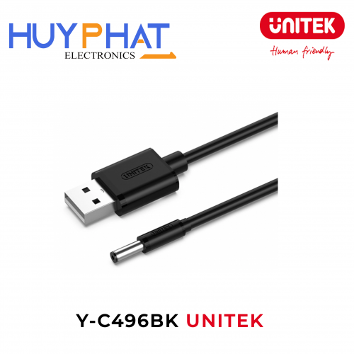 - Cáp nguồn UNITEK Y-C496BK chuyển đổi từ cổng USB sang đầu DC 3.5mm (chuẩn 3.5mm ngoài / 1.35mm trong), thích hợp cấp nguồn cho đèn bàn, loa mini, quạt nhỏ, thiết bị âm thanh, v.v.