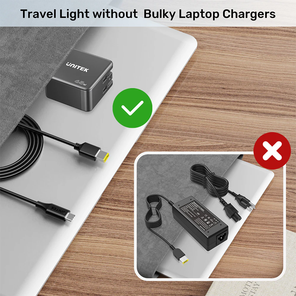 Được thiết kế cho máy tính xách tay Lenovo, cung cấp công suất lên đến 65W trong thiết kế nhẹ và di động, thay thế bộ sạc cồng kềnh một cách tiện lợi