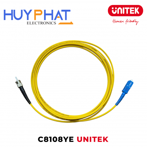 Cáp quang nhảy UNITEK C8108YE-3M được thiết kế với đầu nối SC/UPC – ST/UPC, sử dụng sợi Single Mode chất lượng cao, độ suy hao thấp, đảm bảo tín hiệu truyền tải ổn định và chính xác.
