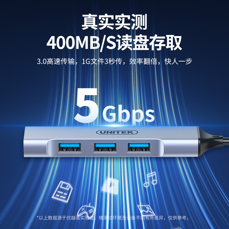 - Hub chia 4 cổng UNITEK H311B là bộ chia USB 3.0 sử dụng giao tiếp Type-C giúp mở rộng 4 cổng USB tốc độ cao.