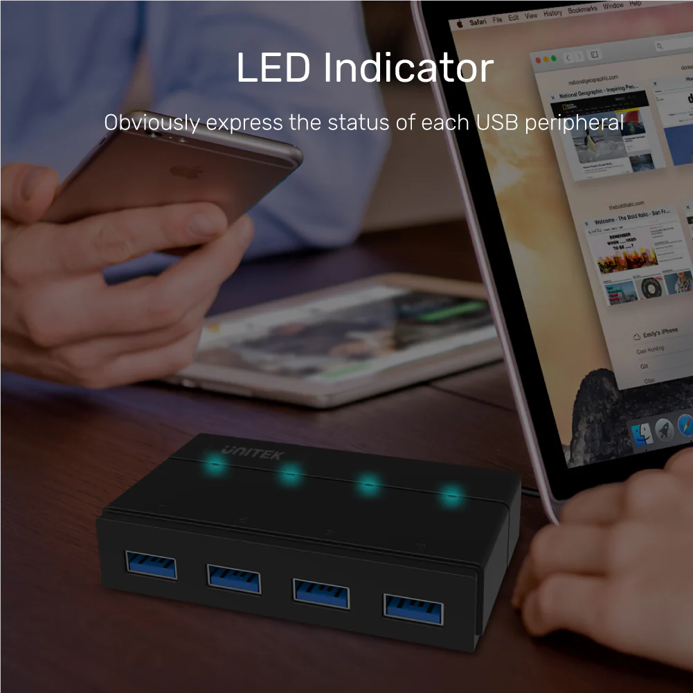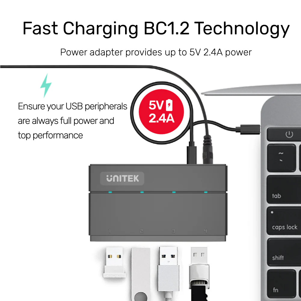 Tối đa hóa khả năng kết nối với Hub USB 4 cổng của chúng tôi, một giải pháp nhỏ gọn để mở rộng cổng USB và kết nối nhiều thiết bị cùng lúc.
