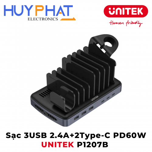 Sạc 3USB 2.4A+2Type-C PD60W UNITEK P1207B