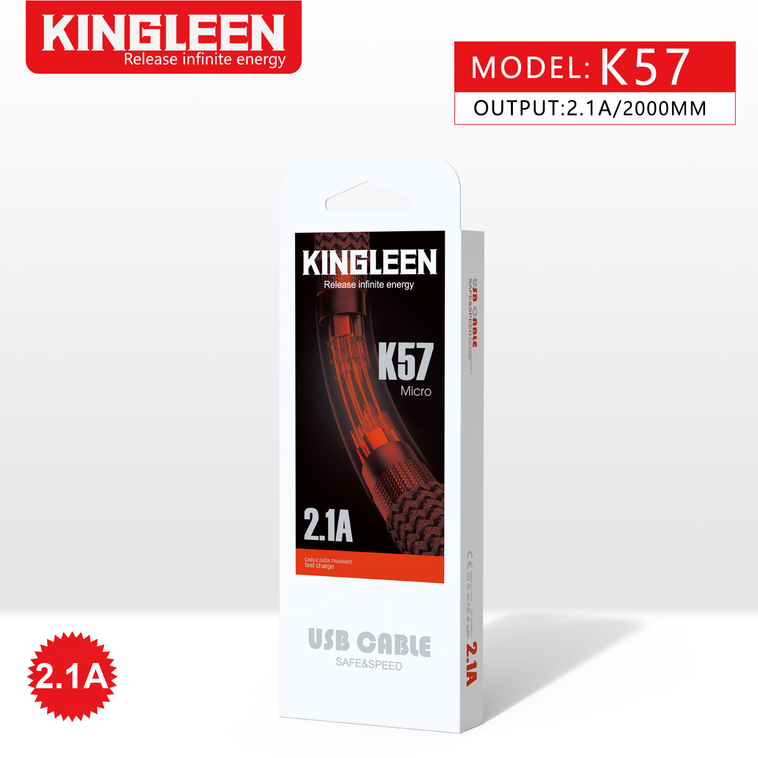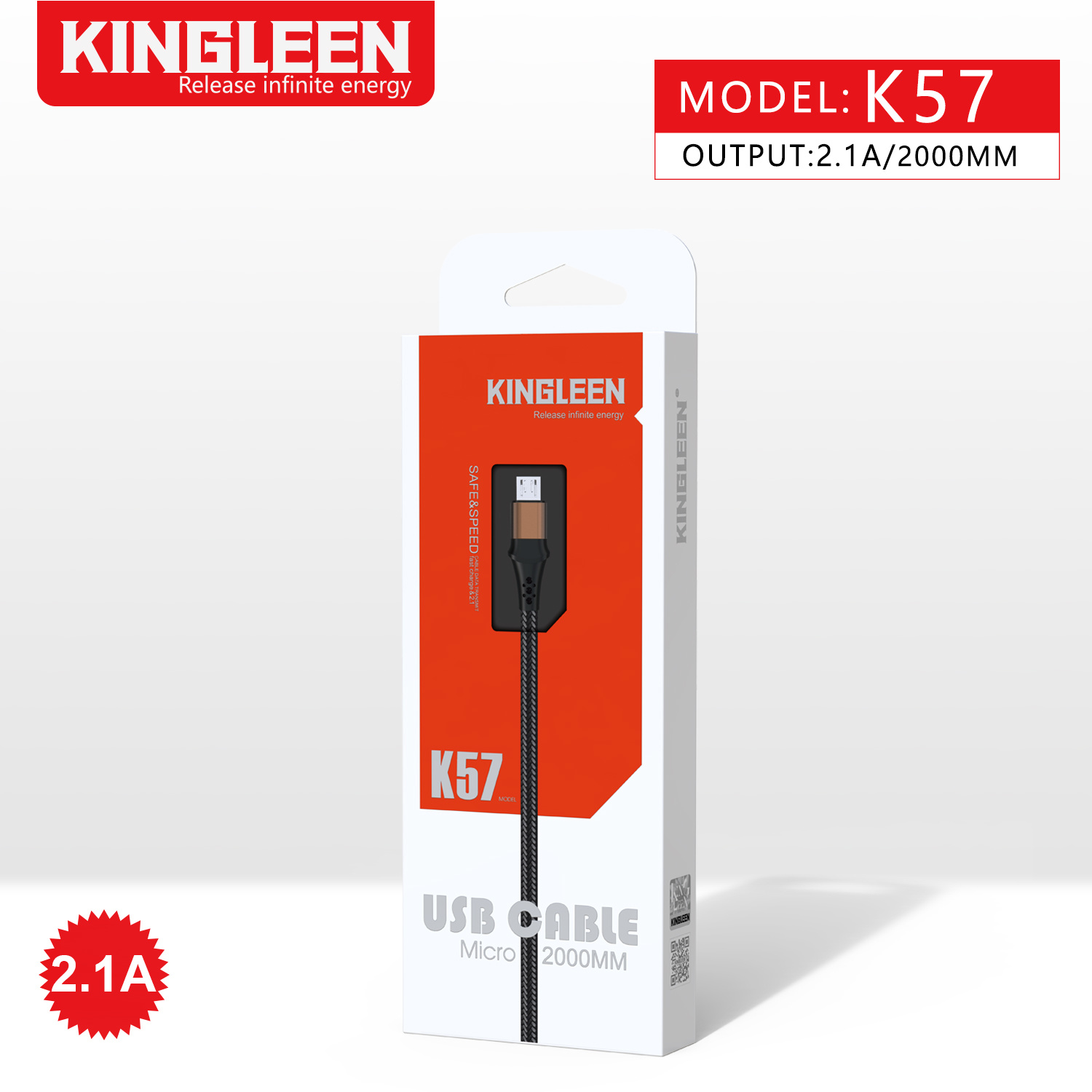 CÁP USB 2.0 -> MICRO USB 2.1A 2M KINGLEEN K57